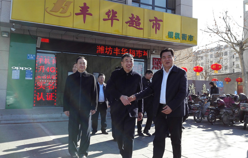 2月6日上午,濰坊市委副書記、高新區黨工委書記王獻玲及隨行人員到我公司連鎖超市銀楓店檢查指導工作。王書記一行查看了街市、食品超市及監測蔬菜、瓜果農藥殘留和肉類、生鮮的速檢室,還饒有興趣地查看了美發、美甲等便民服務項目。王書記對我公司特色經營、便民服務給予了肯定。